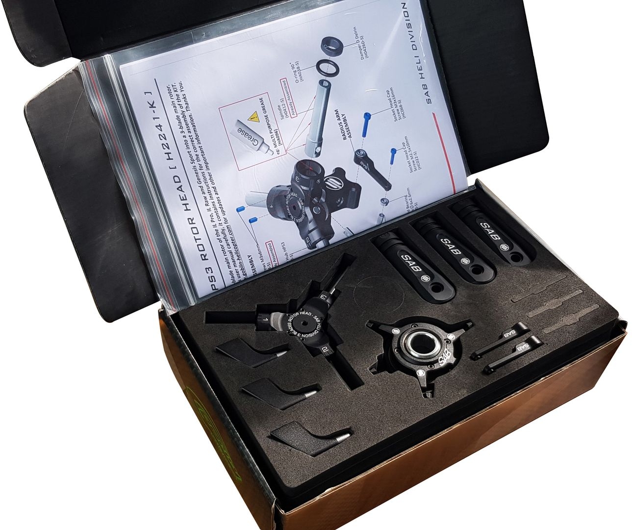 - Aluminum Main Hub D15 x 1pc - Steel Spindle Shaft x 3 pcs - Aluminum Main Blades Grip x 3pcs - Alumium Main Blades Grip Arm x 3pcs - Titanium Main Linkage x 3pcs - Aluminum Swashplate D15 x 1set - Hardware