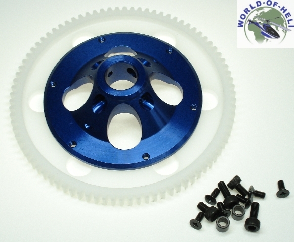 unteres Hauptzahnrad für Heckabtrieb, Zahnrad aus CNC gefrästem DelrinZahnradhalter aus blau eleoxiertem ALU