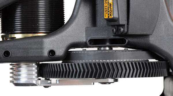 robuster Heckantrieb über HTD-Zahnriemen mit Alu-Riemenrädern