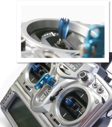 CNC machined aluminum sticks for JR transmitters. The length is adjustable from 15mm to 25mm. The tips are with a design which is not so easy to get slip in controlling. Easily replacing the stock sticks from the very bottom of the sticks