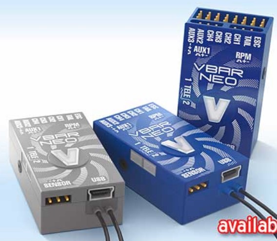 Der wesentlichste Fortschritt ist das interne Sensorarray: Es kommen zwei unterschiedliche Mehrachs-Sensoren zum Einsatz, die sich bei der Arbeit ergänzen, und so auch bei hoher Vibrationbelastung funktionieren. Die Stromversorgung wurde deutlich verbessert, so dass auch Servos mit mangelhafter Filterung der Störungen auf der Versorgung der VStabi NEO nichts anhaben können.