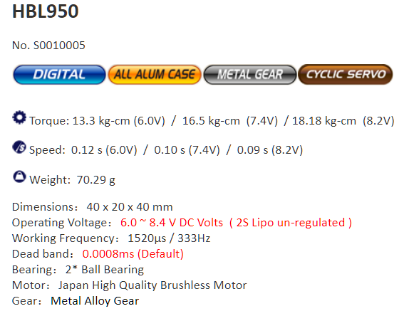 MKS HBL 950 HV Brushless Digital Servo (Taumelscheibe)