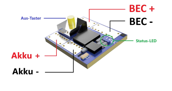 Bei Verwendung des BattSwitch mit Reglern anderer Hersteller informieren Sie sich bitte über die Pufferbarkeit des BEC.
