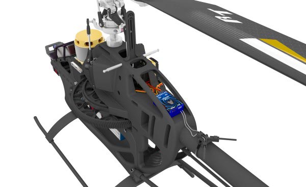 Der neu konstruierte Rotorkopf ist leichter und filigraner geworden, ohne dabei die sehr guten Flug- und Steuereigenschaften und die Robustheit des bisherigen Kopfes zu verlieren.