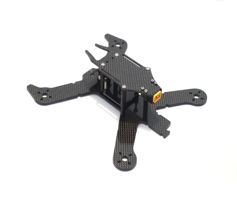 The sRacer is extremely light weight and easy to build. Features such as a fully adjustable CNC aluminum camera mount, dedicated VTX mounting location and CNC aluminum XT60 connector bracket among others are sure to please beginners as well as expert racers alike. The camera mount is fully adjustable- from straight and level to over 70 degrees of upwards tilt!