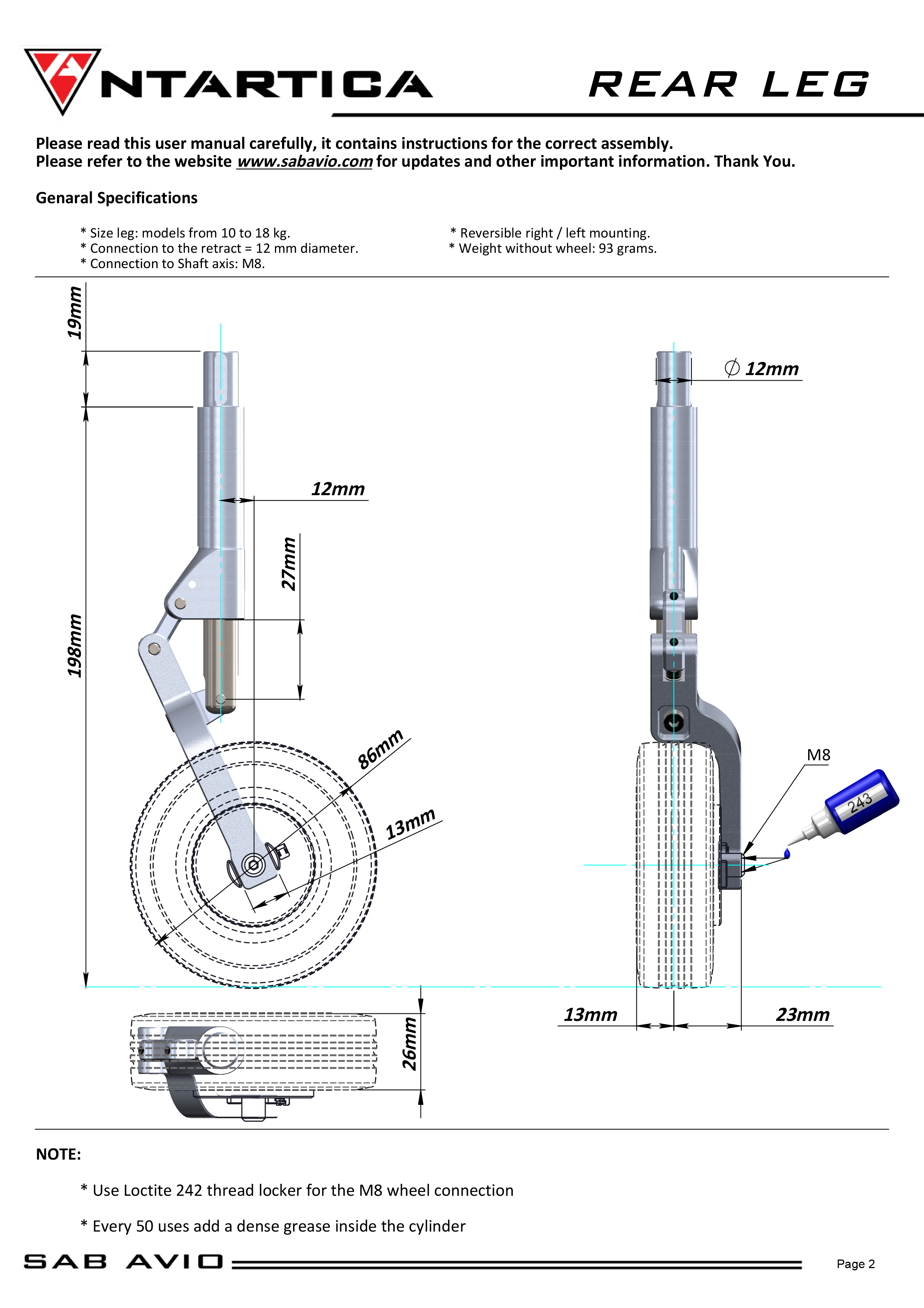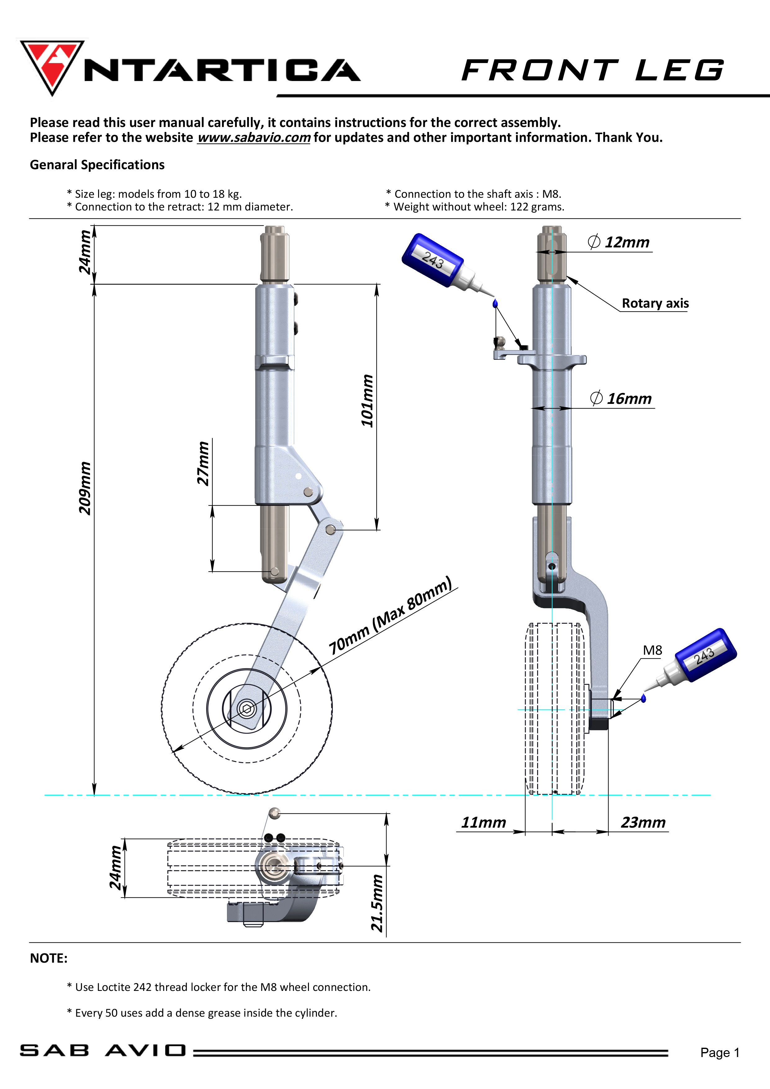 Use Loctite 242 thread locker for the M8 wheel connection. * Every 50 uses add a dense grease inside the cylinder.