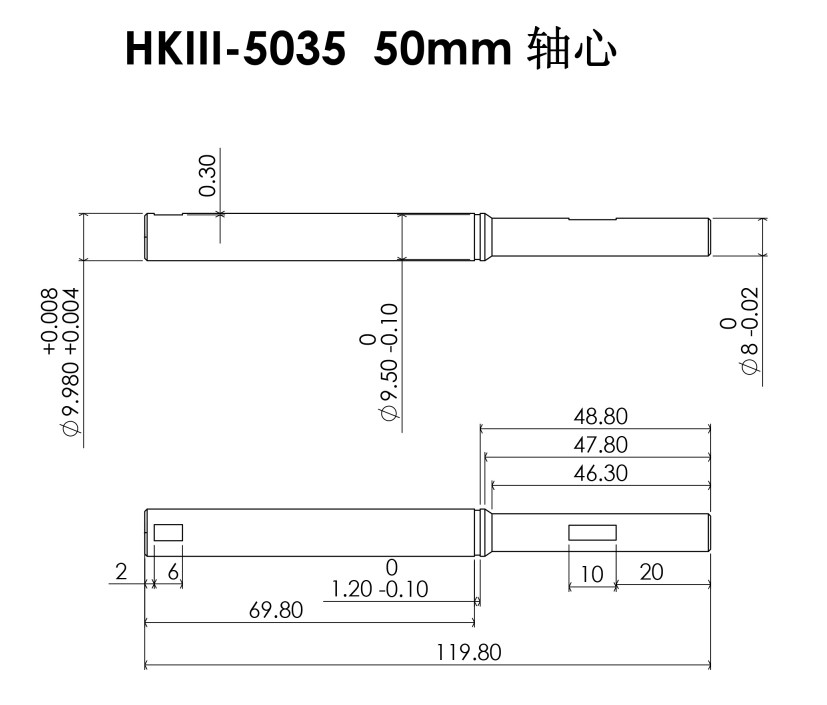 This extended shaft for the HKIII-5035 series motors measures 10mm in diameter, and is 125mm in long. The pinion end of this shaft is ground down to 8mm to allow the user to install 8mm pinion gears. The shaft kit will also fit other brushless motors that require a 10mm shaft of this length. The shafts can be cut shorter with a Dremel tool and a cut-off wheel if necessary to fit other motors.