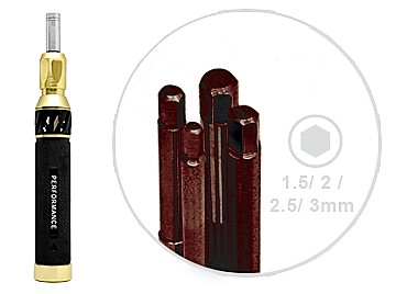 - This single tool contains 4 different hex sizes (1.5, 2, 2.5, 3mm).
