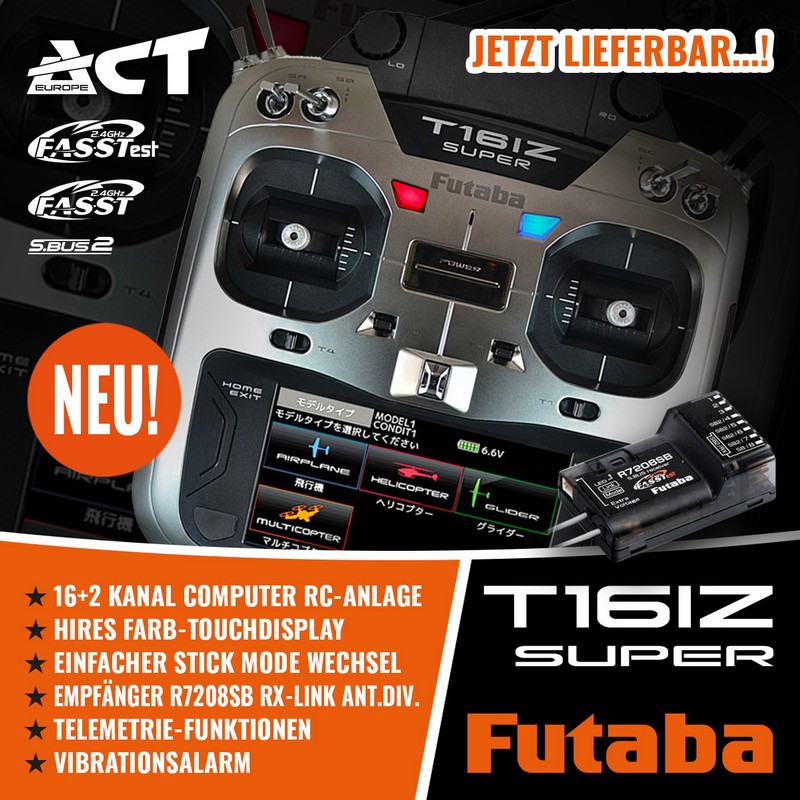 Mit dem Computer-Fernsteuersystem Futaba T16iZ Super gelingt der kostengünstige Sprung in die Profi-Klasse!