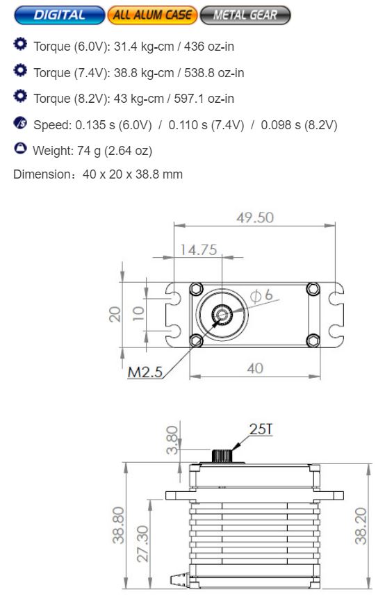 Servo is recommended for use on Heli, F3A & Jet applications.